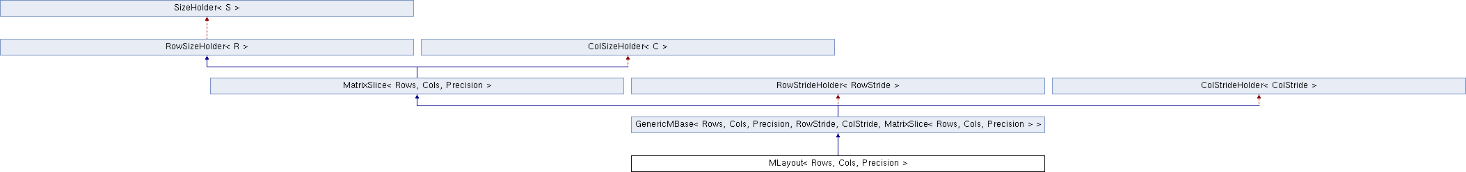 Inheritance diagram for Slice< RowStride, ColStride >::MLayout< Rows, Cols, Precision >: